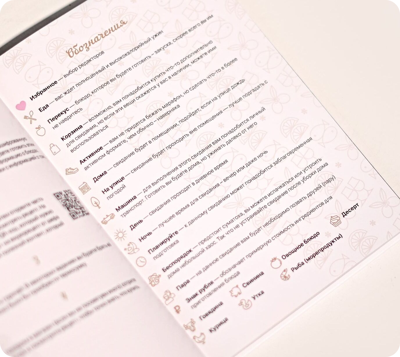 Все свидания зашифрованы под скретч слоем. Это и создаёт ощущение сюрприза. Вы стираете скретч слой ребром монетки и выполняете свидание согласно инструкции. Во время свидания не забывайте делать фотографии (а почему бы и нет?), чтобы потом распечатать самую яркую и вклеить в книгу.